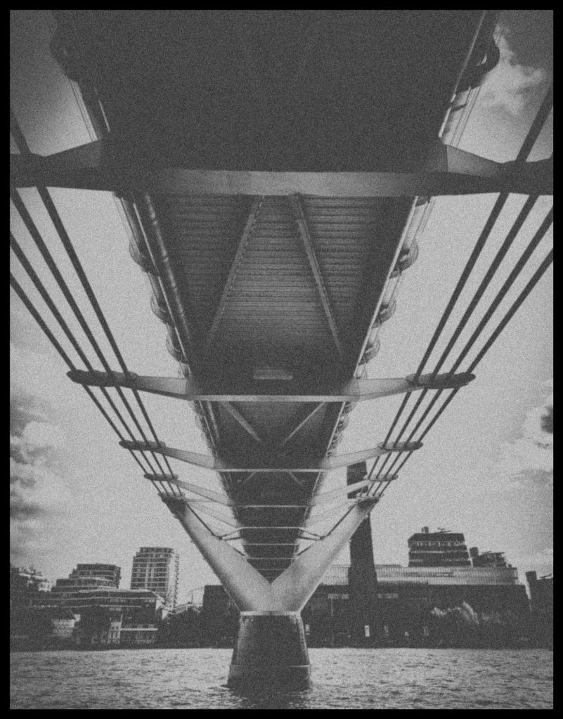 An image showing one of the last remaining Police Boxes in the UK. An image showing the underside to the Milenium Bridge crossing the River Thames.An image showing a gentleman sat at the foot of a statue of Isambard Kingdom Brunel.